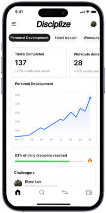 Habit tracking, meal plans, workouts, budgets and goal management in one app - customised for those who want to do something with their life. Disciplize makes self-improvement simple and sustainable.